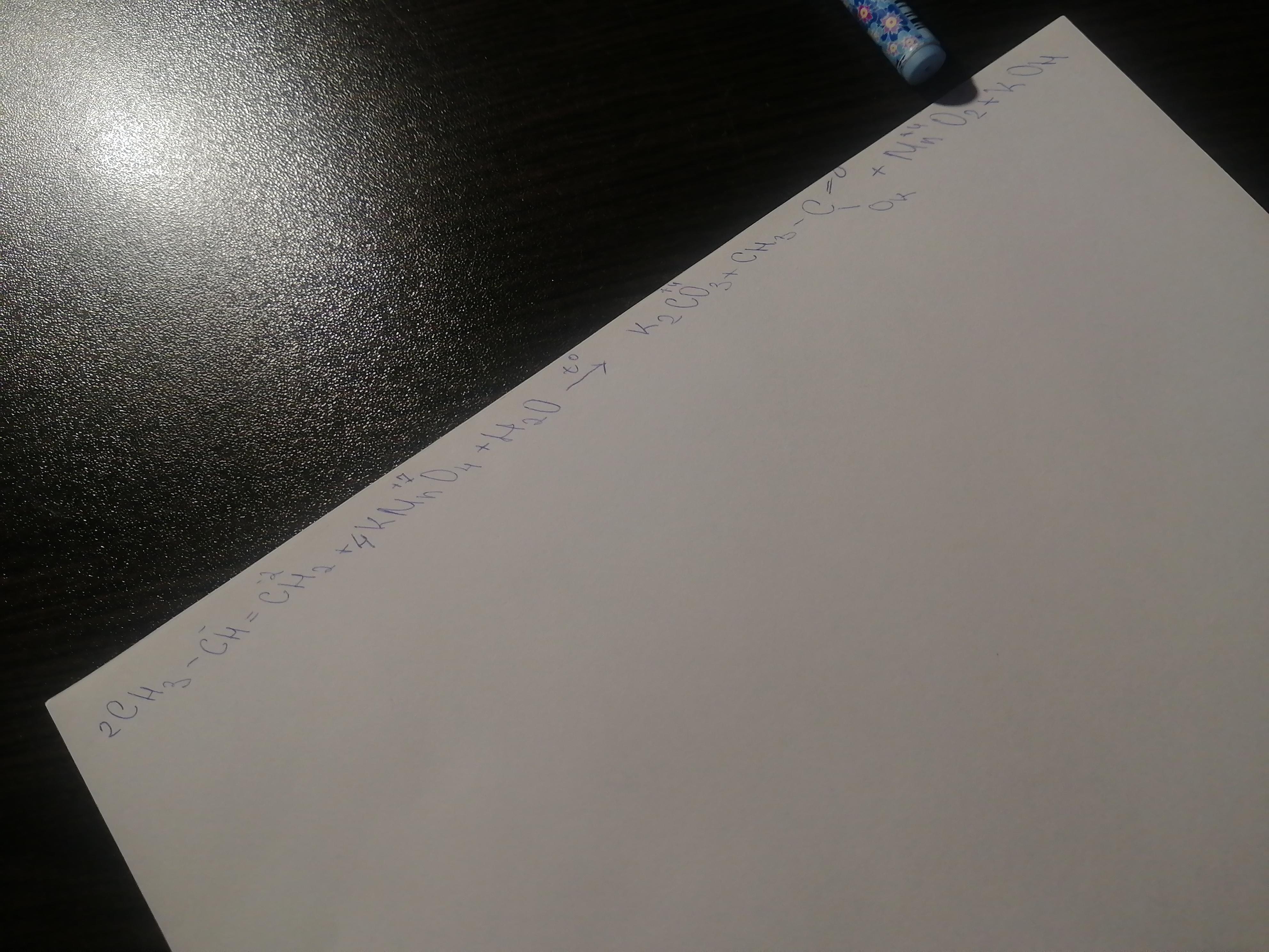 3CH3-CH=CH2 + 10KMnO4 = 3K2CO3 + 3CH3-COOK + 10MnO2 + KOH + 4H2O