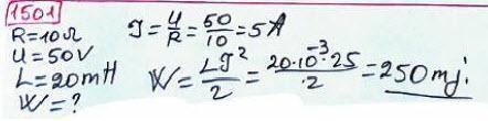 На котушці з опором 10 Ом підтримується напруга 50 В. Чому дорівнює енергія магнітного поля в котушці, якщо її індуктивність 20 мГн?