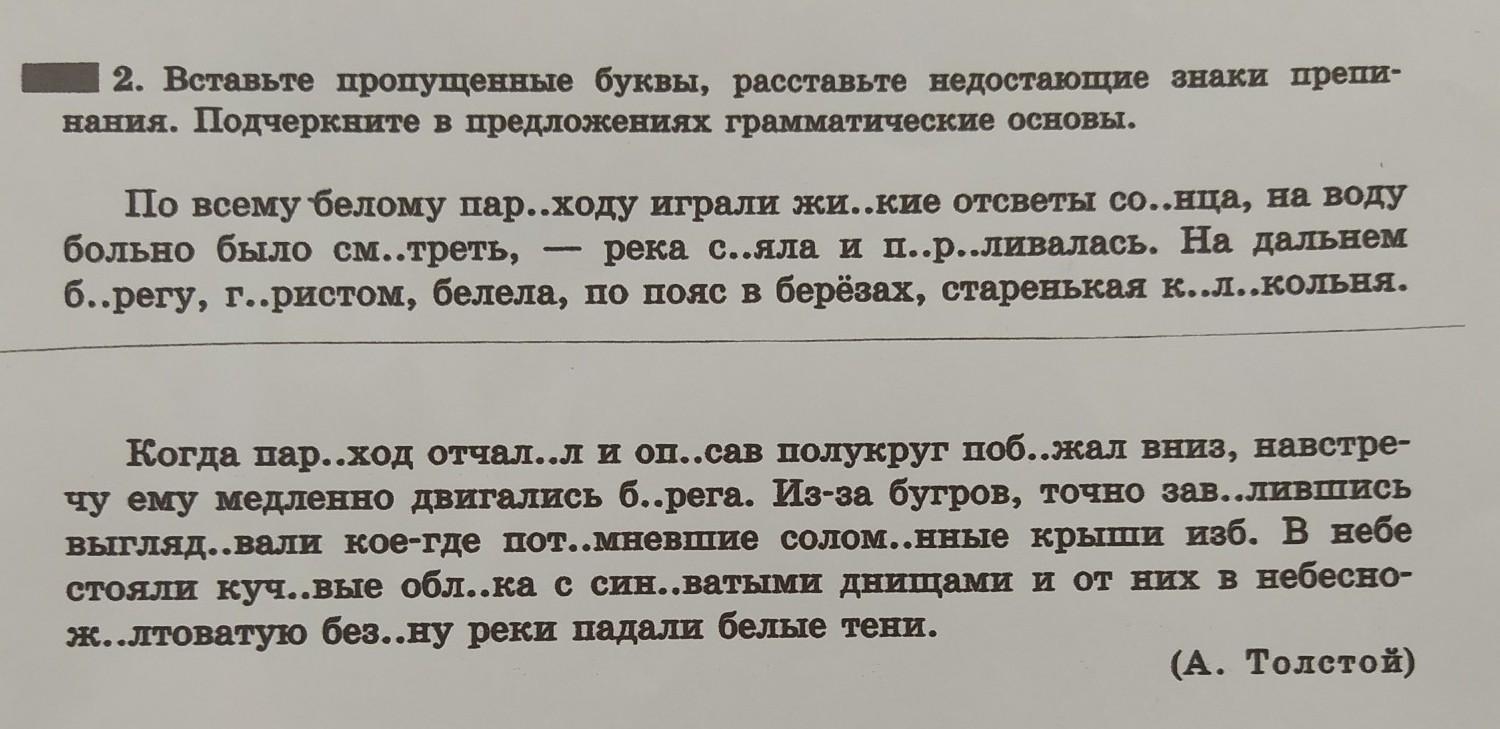 2. Вставьте пропущенные буквы, расставьте недостающие знаки препи- нания. Подчеркните в предложениях грамматические основы.