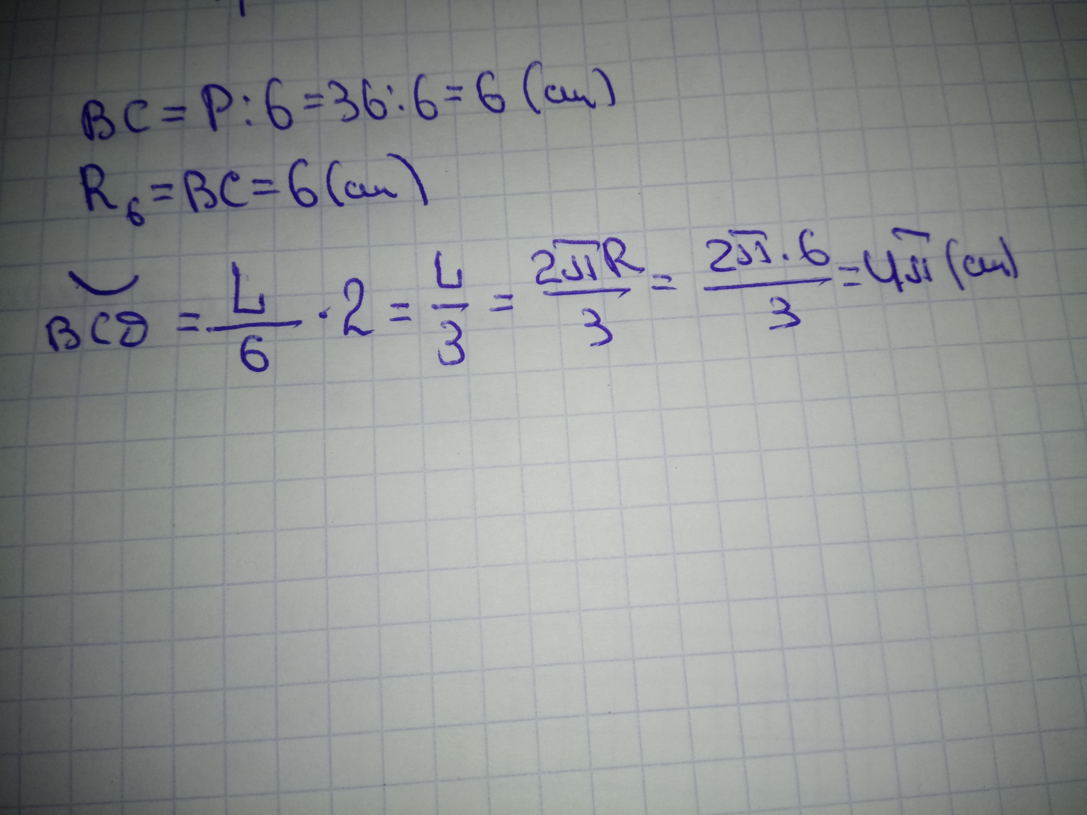 Окружность описана около правильного шестиугольника с периметром 36 см. Определите длину дуги BCD.