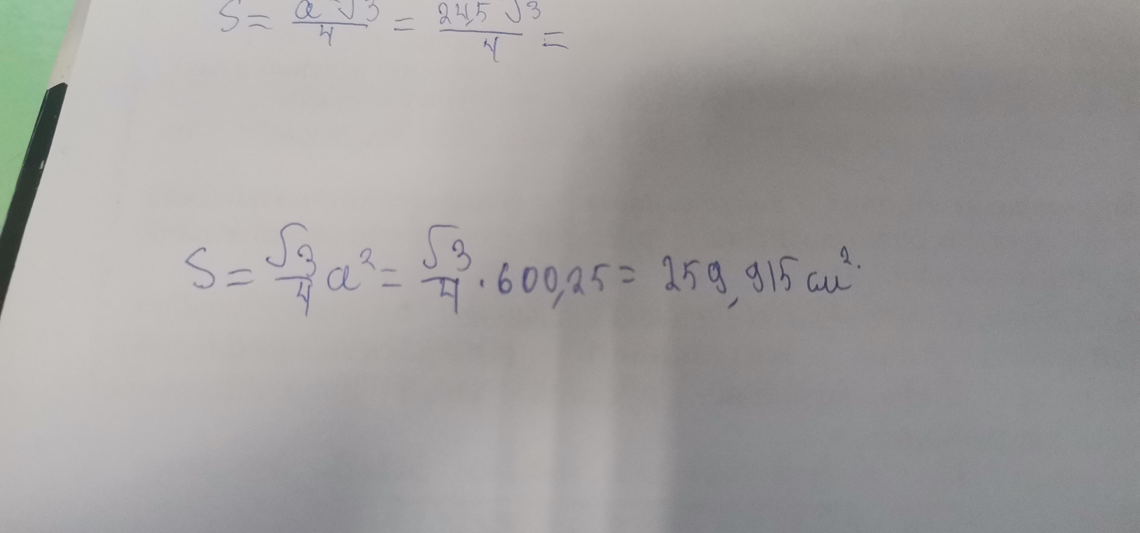 Вычислить площадь равностороннего треугольника со стороной 24,5 см.
