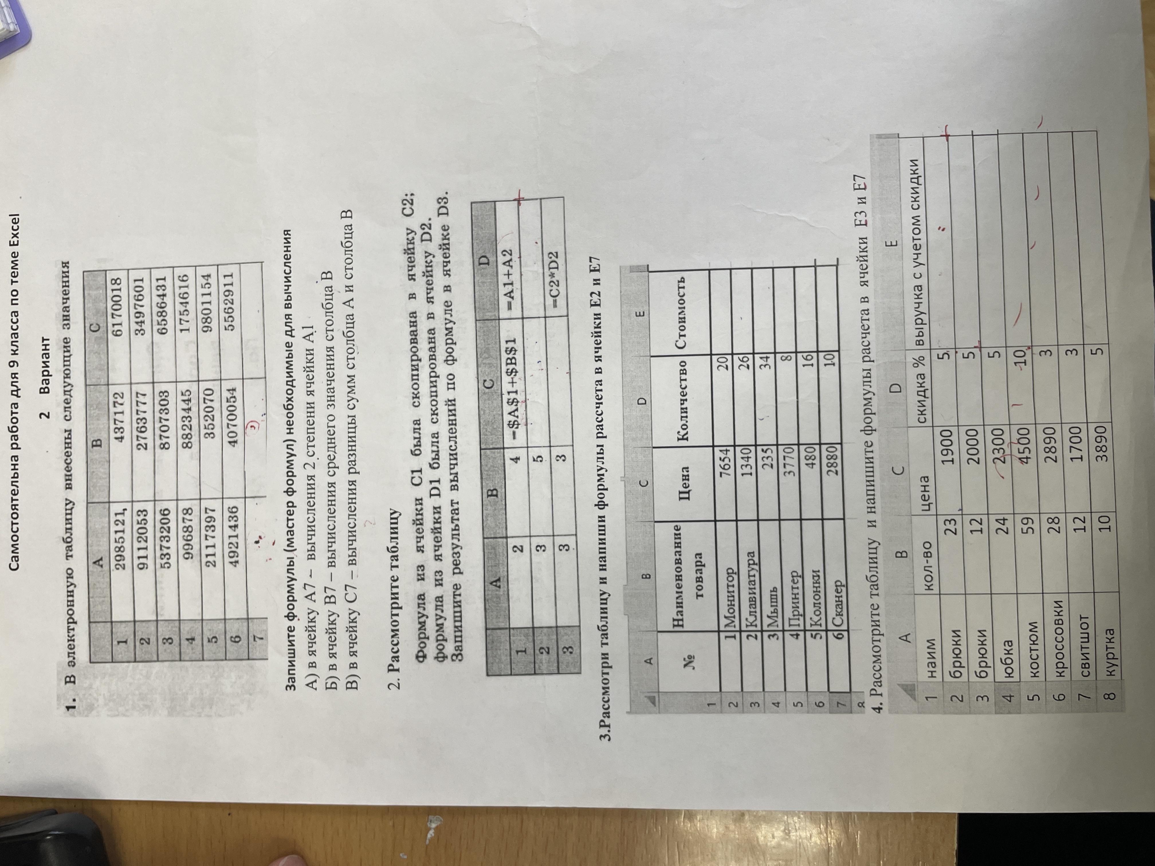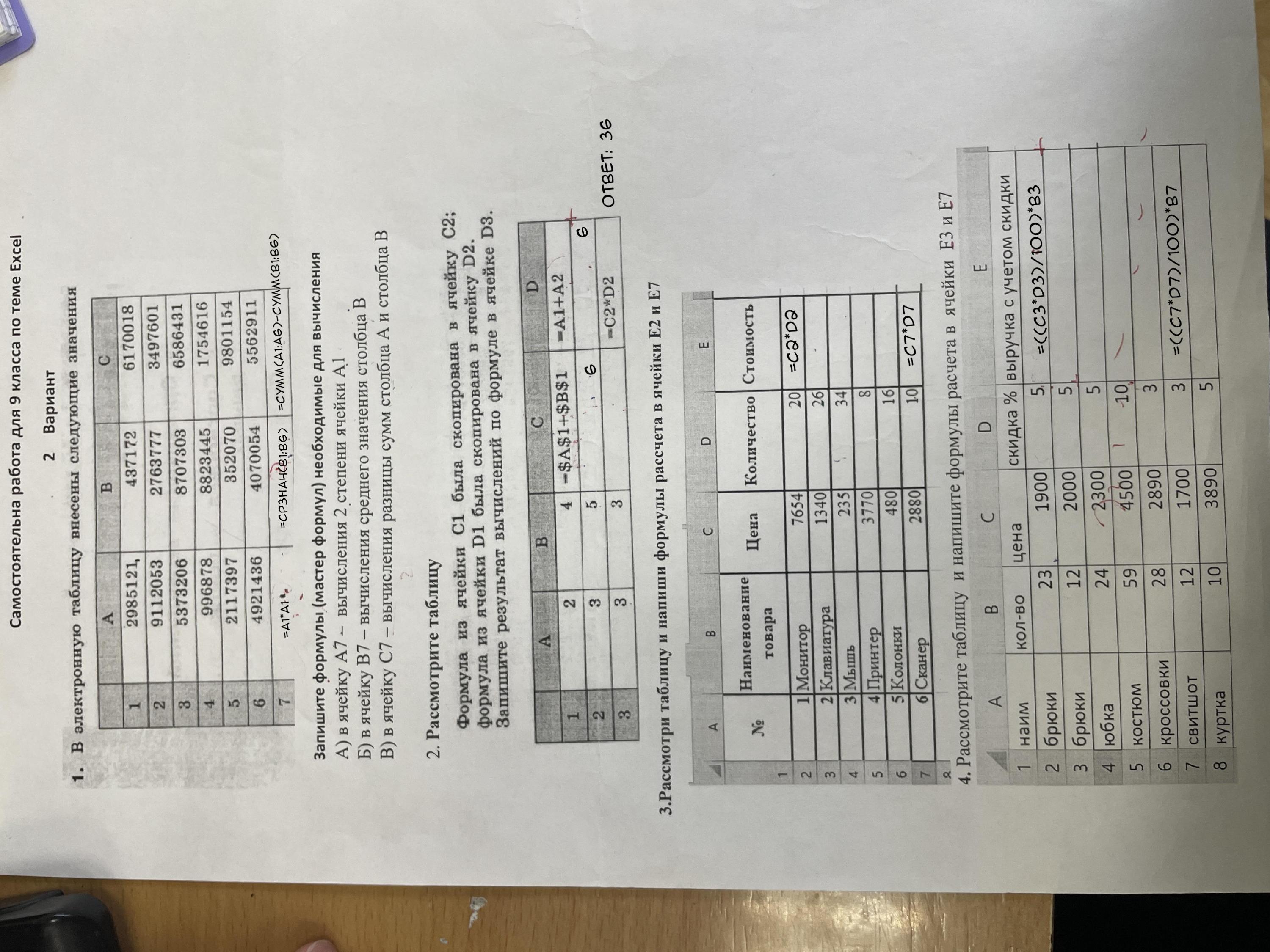 В четвертом задании ошиблась, первая формула должна быть на ячейку ниже, сама формула не меняется