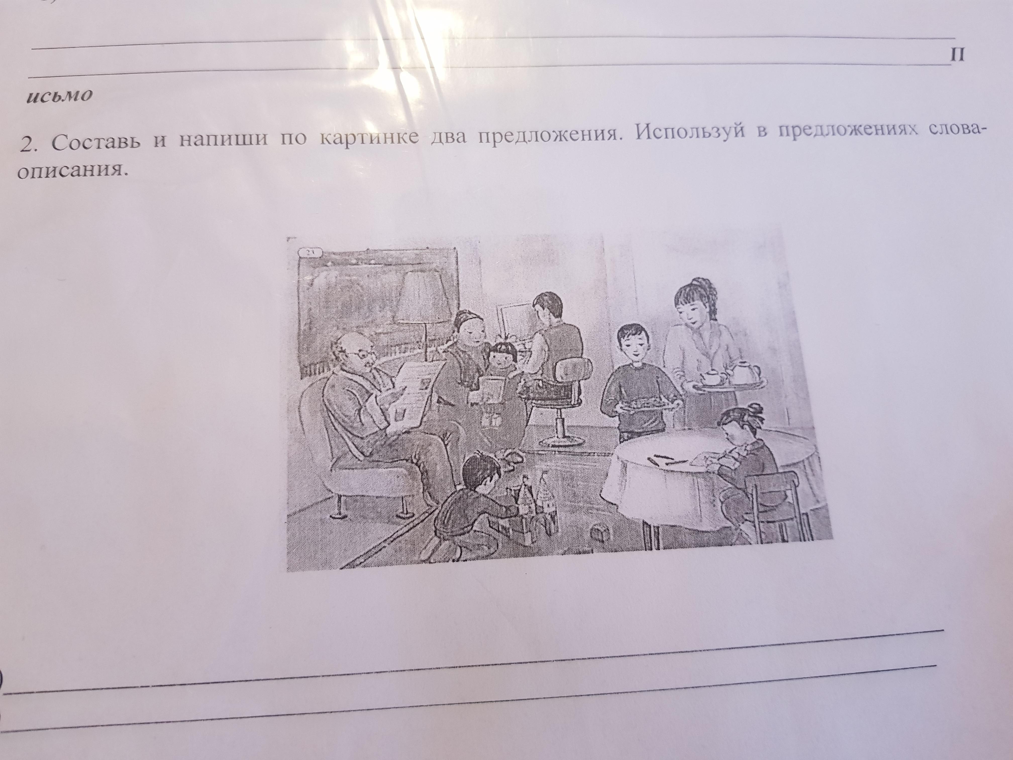 Здравствуйте! Помогите пожалуйста составить картинку. Использовать 2 предложение слова описания