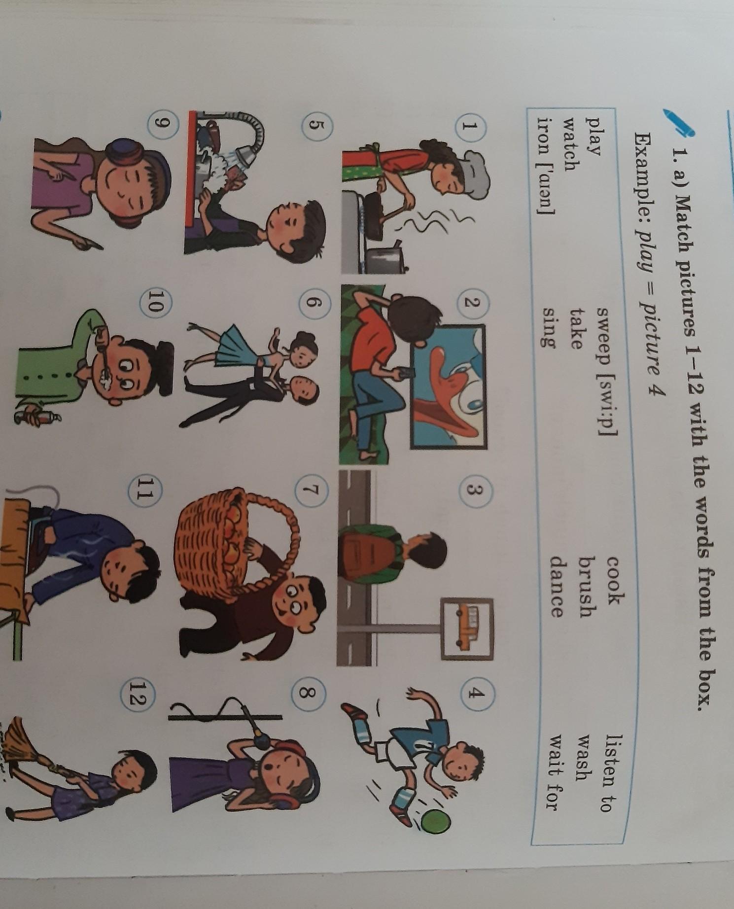 1.a)Match pictures 1-12 with the words from the box Example:play=picture4