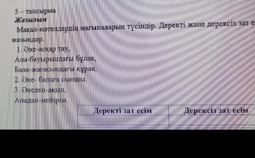 деректі зат есім- әке, ана, бала, сыншы, ақын, бұлақ, тау, құрақ