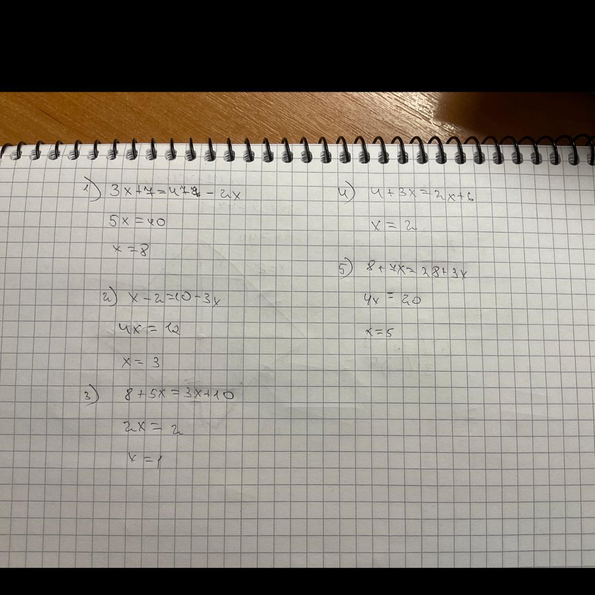 5. 8+7х=28+3х