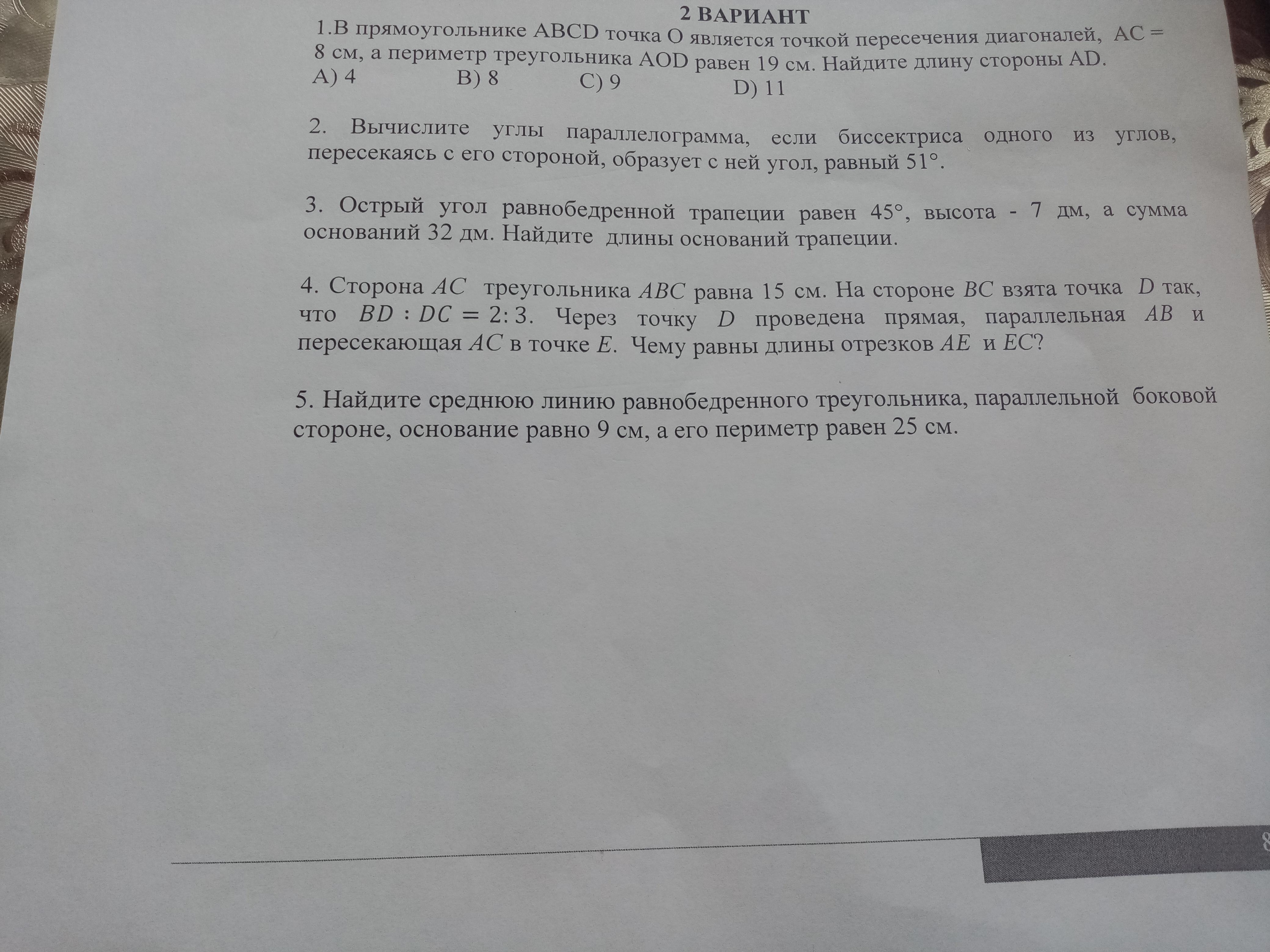 (25-9)/2=16/2=8 боковая сторона. 8/2=4 средняя линия