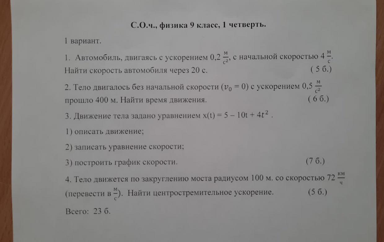 1. Автомобиль, двигаясь с ускорением 0,2 м/с2, с начальной скоростью 4 м/с. Найти скорость автомобиля через 20 с.