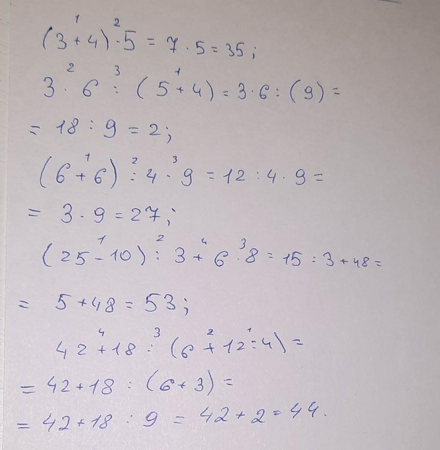 5)42+⁴18÷³(6+²12÷¹4)=44