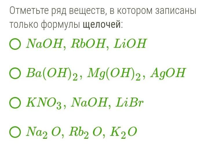Отметьте ряд веществ, в котором записаны только формулы щелочей: