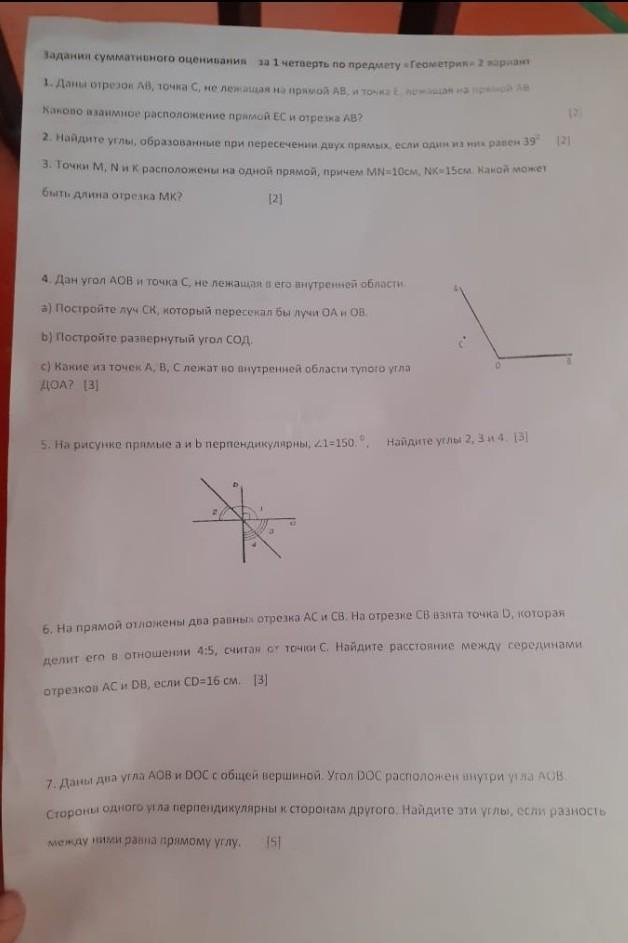 1 задание прямые пересекаються 2 задание 2 угла будут по 39 градусов 2 угла по 141градусу 3 задание 25 см фото к 4 заданию 5 задание угол 2 30 градусов угол 3 тоже 30 градусов как вертикальный угол 4 60 градусов