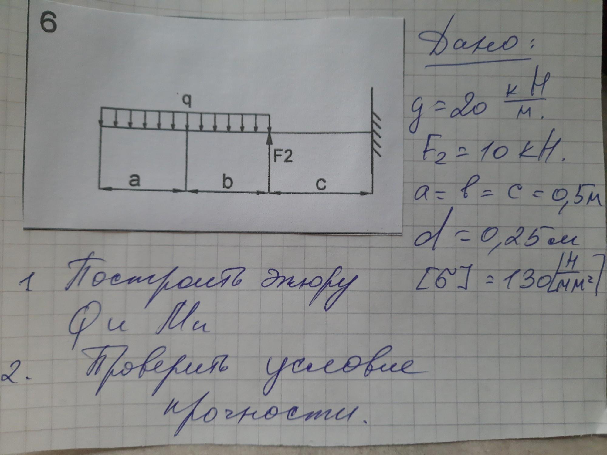 помогите решить задачу по технической механике, можно сделать 1 действие даже без эпюр, главное, чтобы решение было правильное (найти Q и Ми)