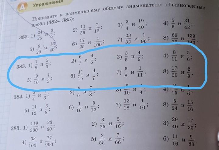 А Упражнения 19 3 5 31 Приведите к наименьшему общему знаменателю обыкновенные 7 и ; 4) И 11 ; и 4 6 40 3 12 23 69 25 7) и 8) и -; 32 96 6) 70 9 25 5) дроби (382—385): 3) 42 2) – 24 36 382. 1) 17 1 и 100 139 140 13) и 40 20 3) сл | со 4) 4 и 5 И 5 9 2) 7 11 И 3 383. 1) су іс - - |ю о 19 ом / от 1 11 4 и 7 7) 10 | 00 5 и 8 8) 17 20 6) и 11 и ; 15 ст см 85 E|ю 5) 10 9 3) 10 1 и 4 5 и 6 8 4) 1 2) 3 И 4. 6 И 15 384. 1) 6 но со Гоо 1 5 13 7) 18 1 и 10 6) и 8) 11 5) И 12 5 15 и 24 16 16 12 5 5 помогите 383
