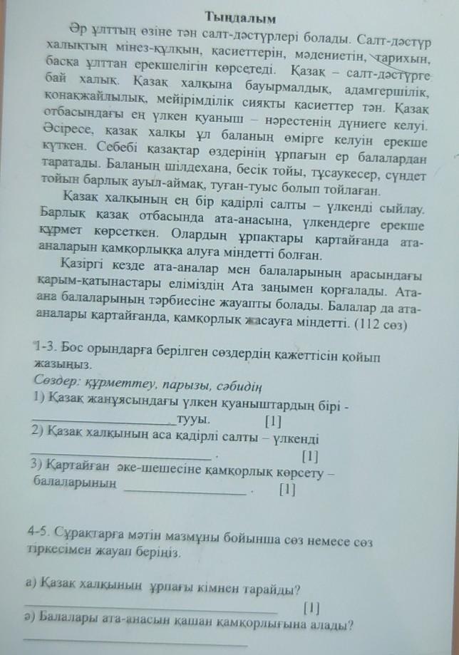 ә) Қазақ ұрпақтарында ата-анасы қартайғанда олардың қамқорлығын өз монына алу міндет болған.