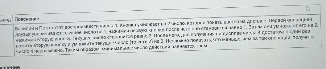 Задача 6: По приезде Василий с Петром обнаружили в своем номере в гостинице странный прибор. Он был оснащен дисплеем, на котором показывалось число 0, и двумя кнопками. Василий сразу понял, что первая кнопка увеличивает число на дисплее на 1, а вторая умножает его на К. В этот момент Петр обнаружил на своей кровати листок бумаги, на котором было написано единственное число N. Теперь друзья хотят воспроизвести число N на дисплее найденного ими устройства, и, поскольку их ждет еще множество дел, им интересно минимальное число нажатий на кнопки устройства для получения числа N. Входные данные В первой строке входных данных записано целое неотрицательное число N (1 < N< 10°). Во второй строке входных данных записано целое положительное число K (2 < K< 10°). Выходные данные Выведите единственное число — минимальное количество нажатий на кнопки устройства для получения на его дисплее числа N. Система оценки Решения, работающие при К= 2, будут набирать не менее 20 баллов. Решения, работающие при N< 20, будут набирать не менее 15 баллов. Решения, работающие при N< 105, будут набирать не менее 35 баллов.