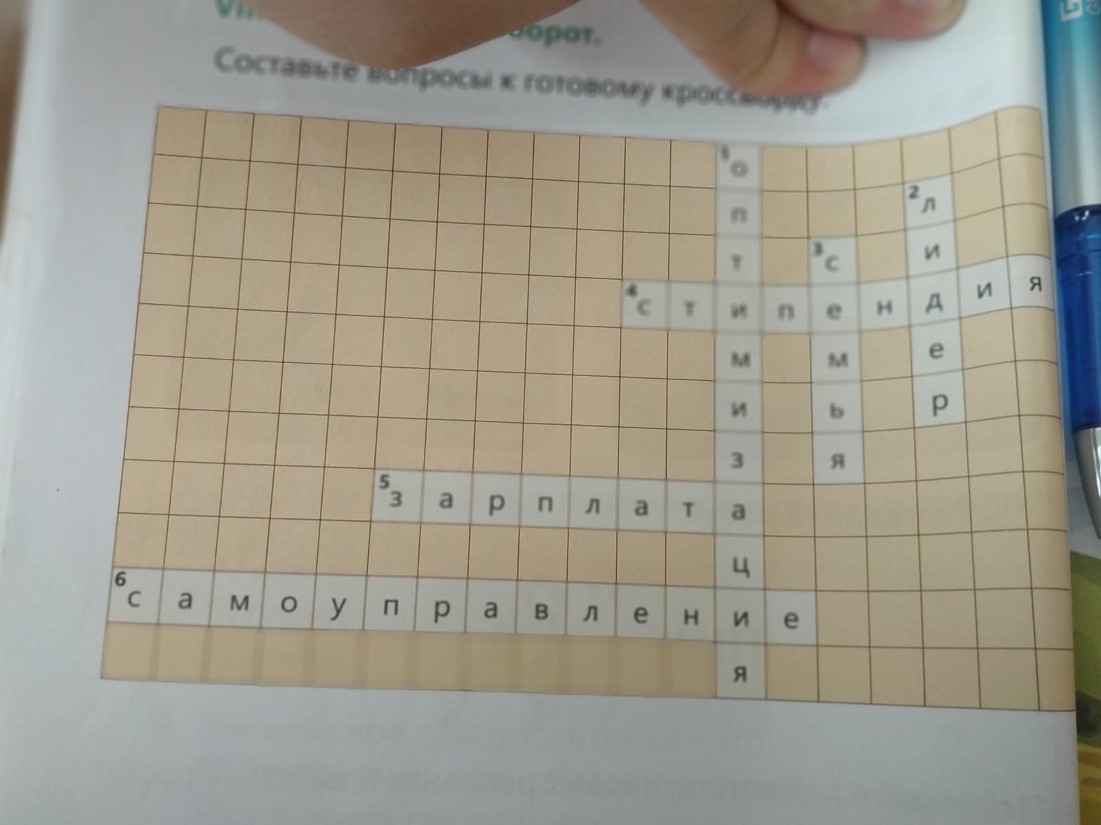 VIII. Кроссворд наоборот. Составьте вопросы к готовому кроссворду.