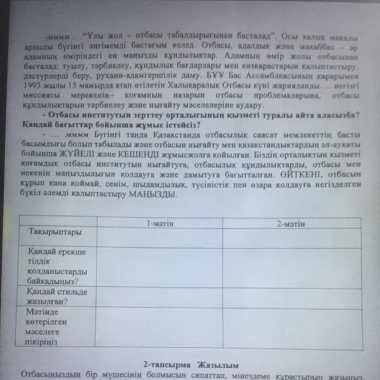 Мәтіндерді өзара салыстырыңыз. Екі мәтіннің тілдік қолданыстарынан қандай