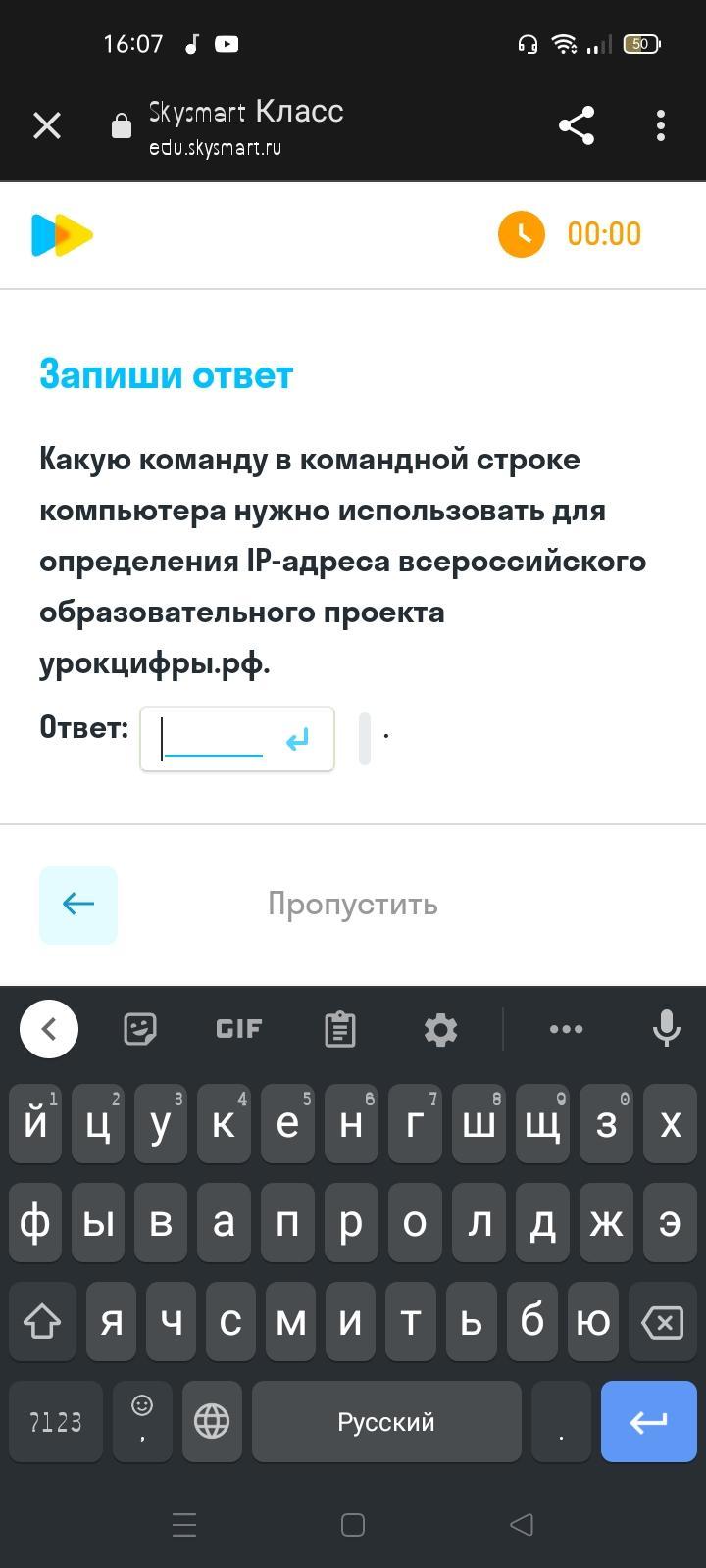 Какую команду в командной строке компьютера нужно использовать для определения IP-адреса всероссийского образовательного проекта урокцифры.рф.