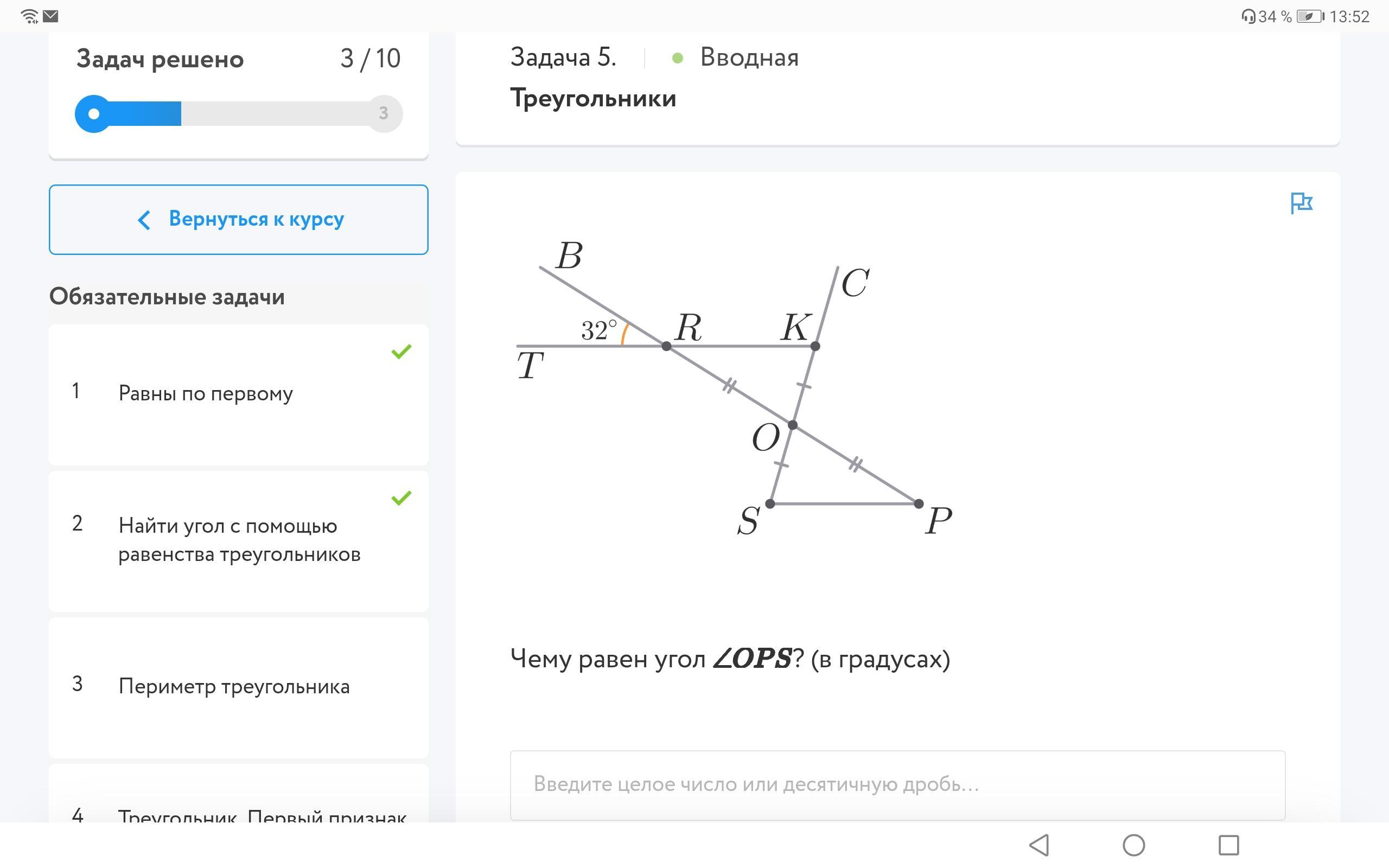 32. углы ROK=SOP, следовательно треугольники одинаковы, следовательно ORK=SPO. ORK=TRB(как вертикальные)