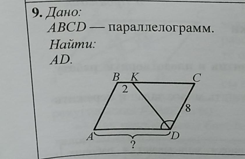 Так как АВСD- параллелограм, то ВС=АD, АD=10.