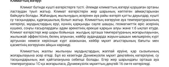 Мәтіннен сөздердің синонимдерін табыңыз. Ауа температурасының жоғарылауы, Ғаламдық жылыну ,Әсер етуде –