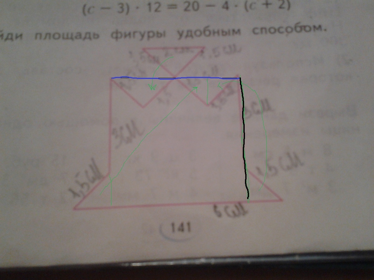 померить стороны вылененные синим и черным. перемножить их и будет площадь. остальные я показала что можно переместить треугольники