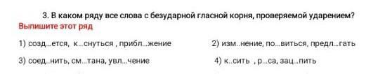 3. В каком ряду все слова с безударной гласной корня, проверяемой ударением? Выпишите этот ряд