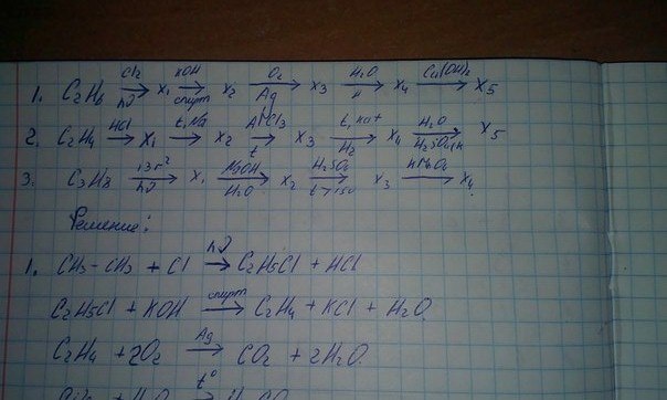 В третий получается 2CH2=CH2+O2--->2(CH2-Ch2)O(элоксиэтан)