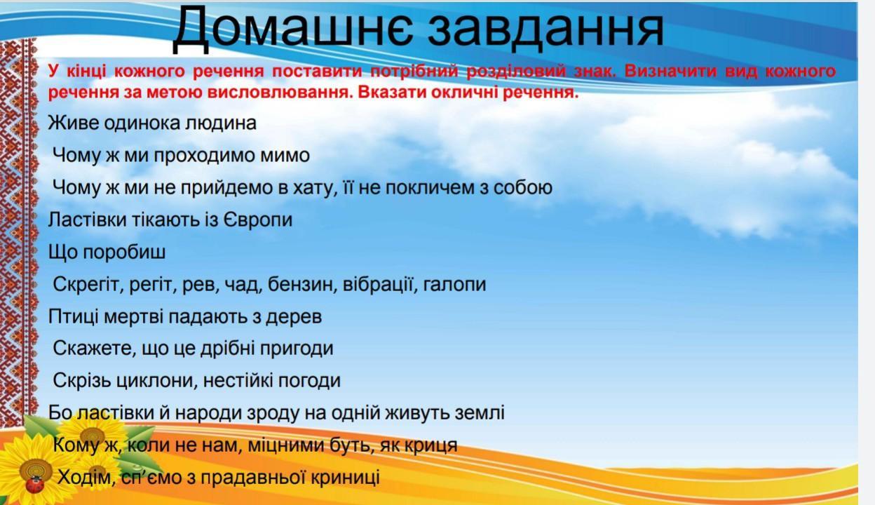 8(9). розповідне ( якщо кома, то питальне)