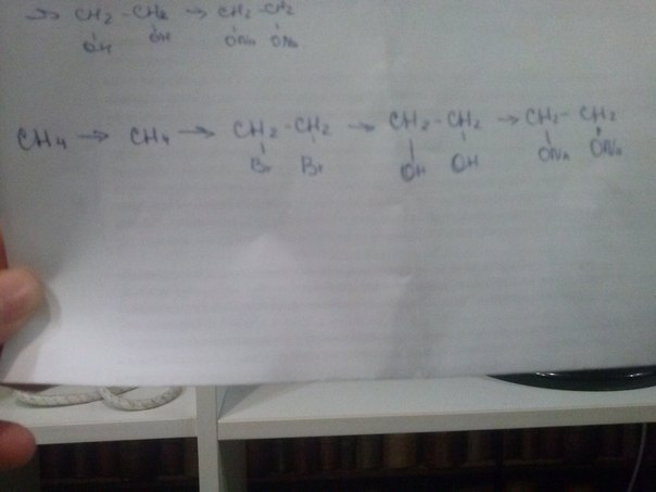 1) 2CH4 ------ CH2=CH2 + 2H2 (над стрелкой t и Ni)