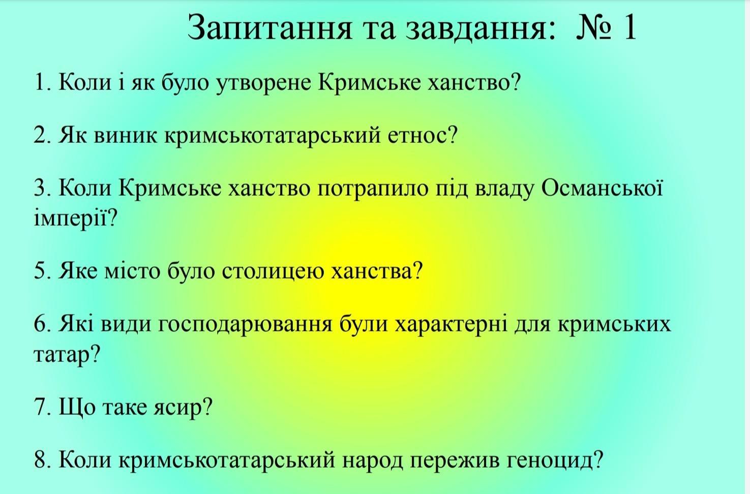 2Після захоплення Криму Золотою Ордою монголи й підкорені ними племена половців, що змішалися з місцевим населенням, утворили кримськотатарський етнос.