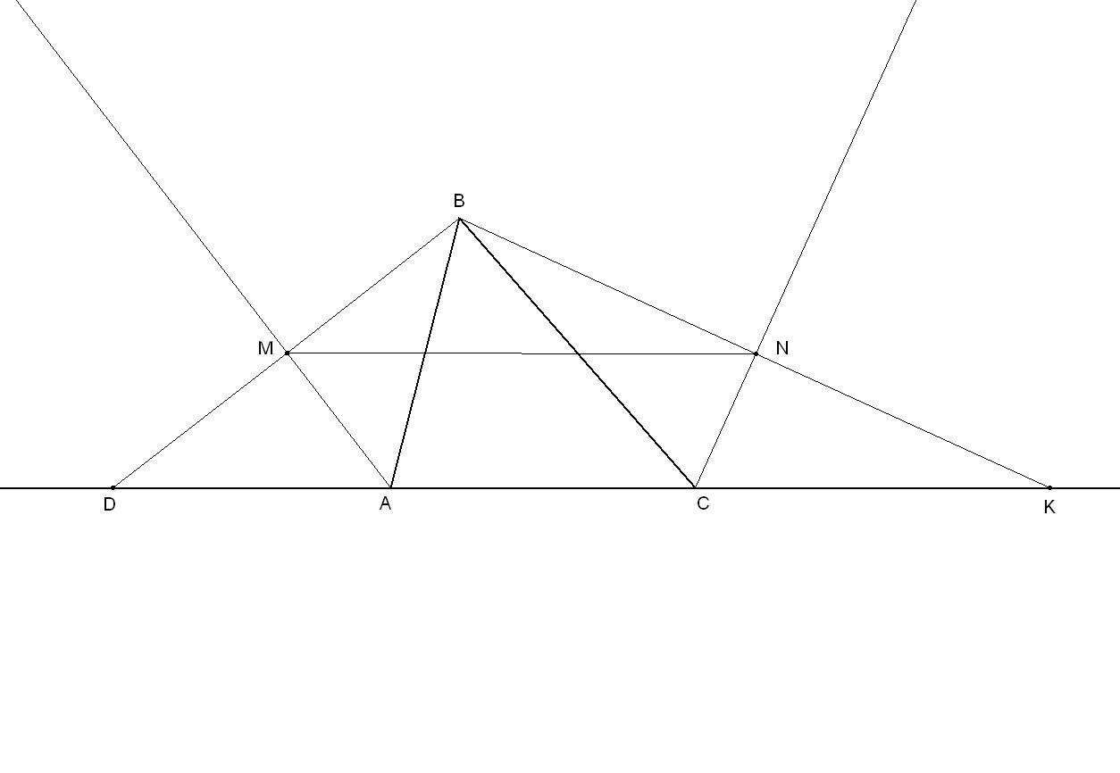 дано трикутник АВС зі сторонами ВС =а, АС=в, АВ=с. Провели бісектриси зовнішніх кутів при вершинах А та С і з вершини В на них опустили препендикуляри BM BN. Знайти довжину відрізка MN