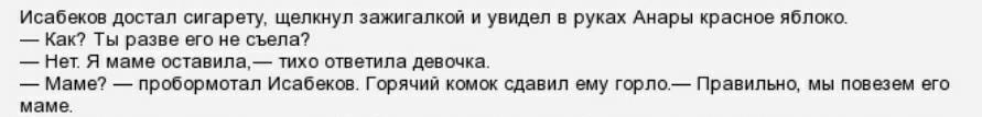 " Маме?- пробормотал Исабеков. Горячий комок сдавил ему горло- Правильно, мы повезем его маме".