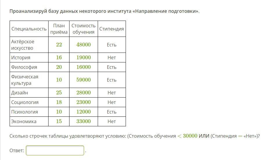 удовлетворяют условие 3 строчки