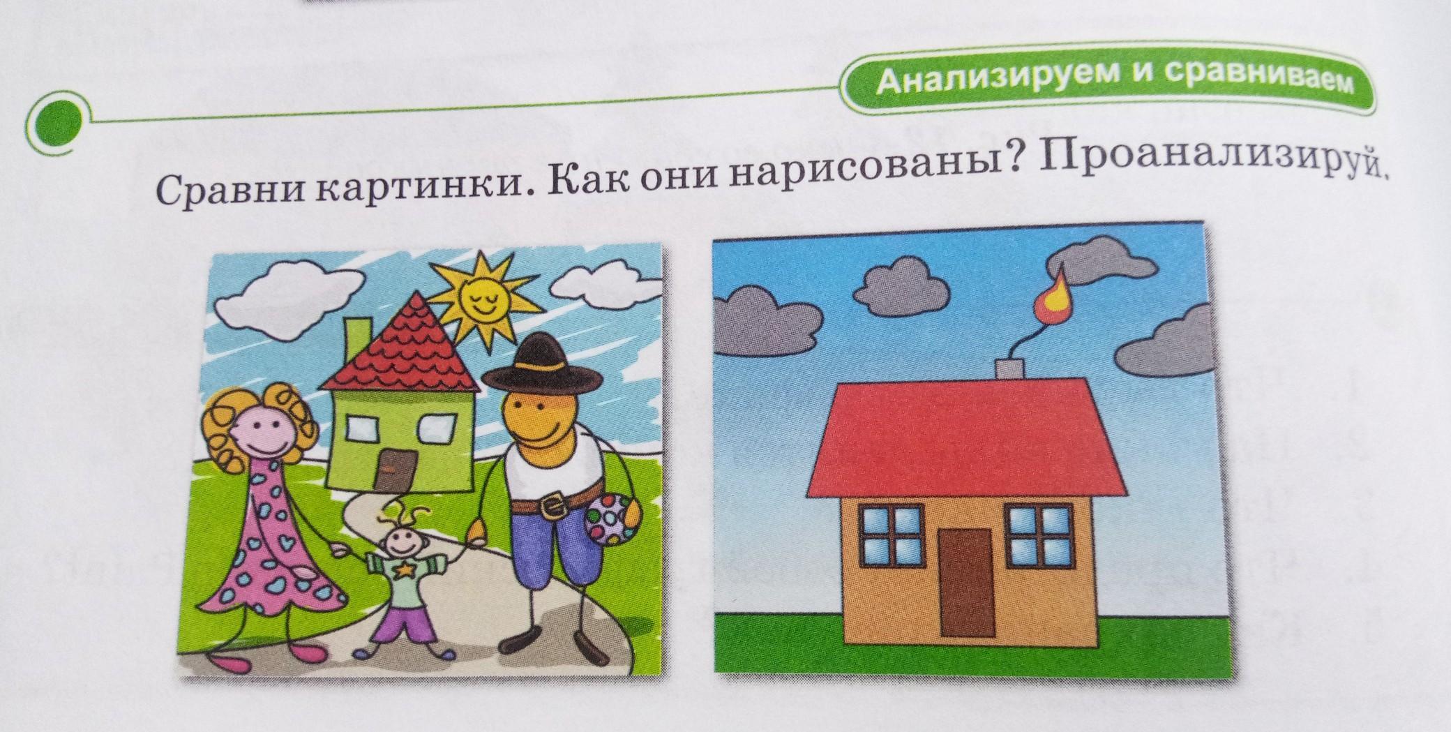 А вот уже вторая картинка нарисована более грамотно. в ней присутствуют ровные линии геометрические фигуры, и некое сравнение дома с другим неживым предметом. И здесь намного лучше лежит цветовой слой.