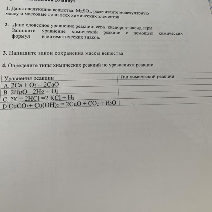 3)Масса веществ ,вступивших в химическую реакцию ,равна массе образовавшихся веществ
