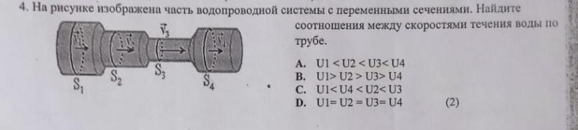 на рисунке изображена часть водопроводной системы с переменными сечениями. Найдите соотношения между скоростями течения воды по трубе.