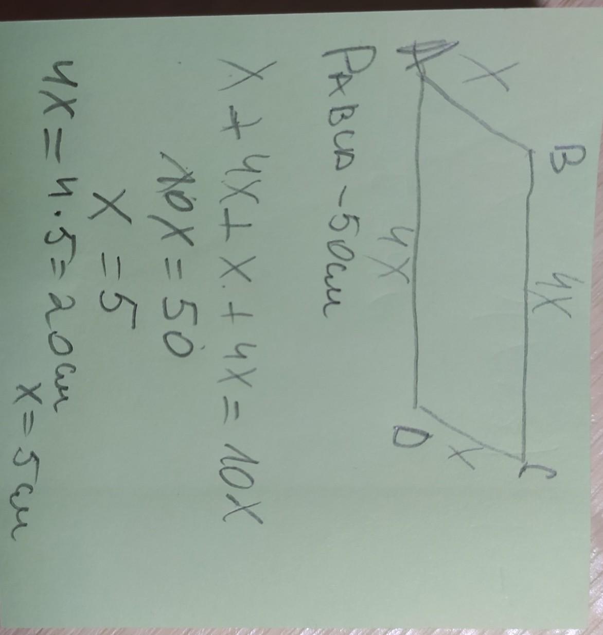 3. Периметр араллелограмма ранен 50 см. Найдите стороны параллелограмма, ее две его стороны относятся как 1:4