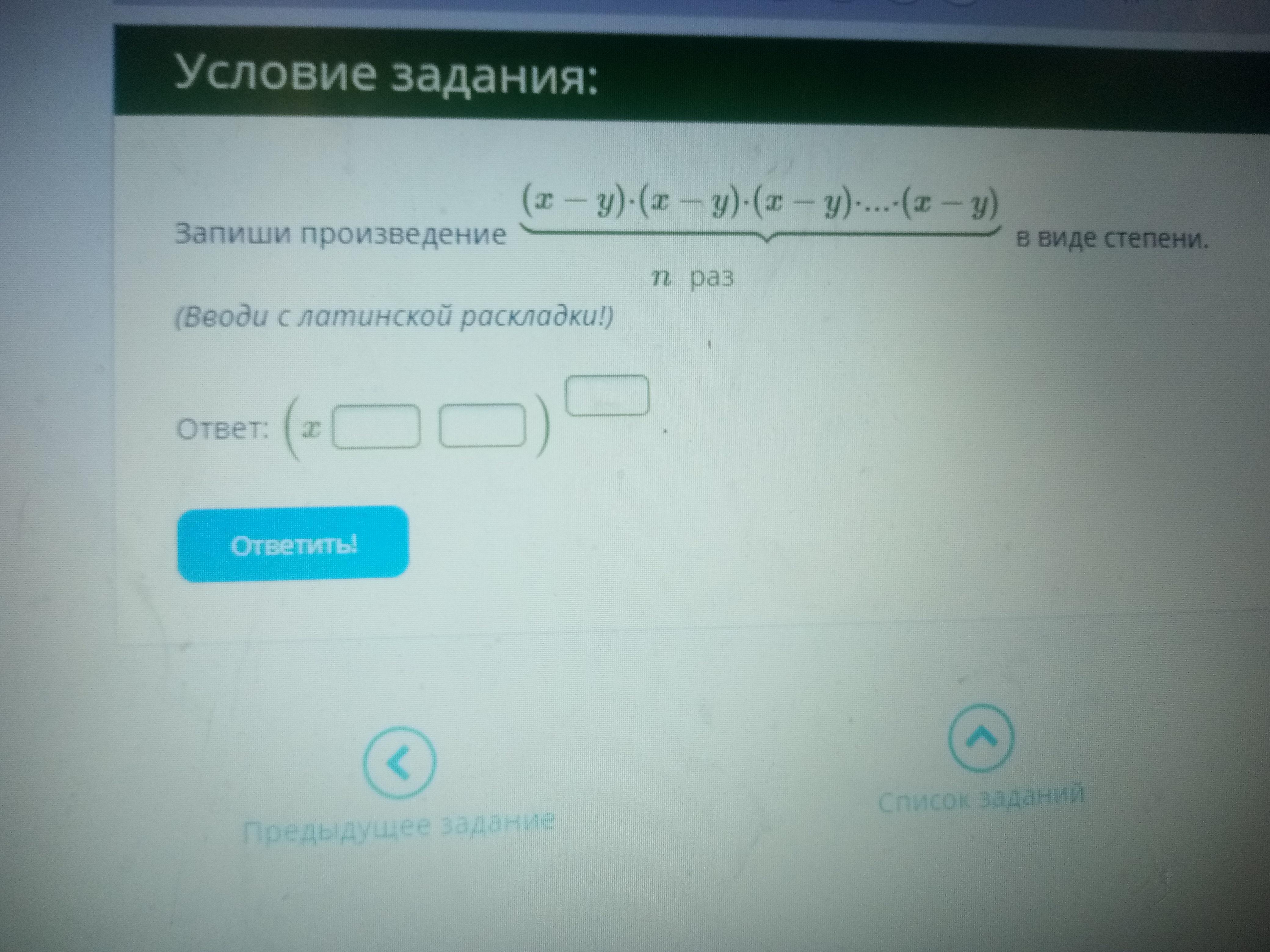 ("^" возведение в степень)