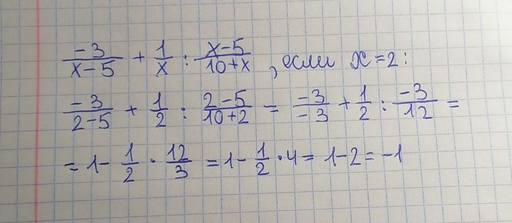 - 3/2-5 + 1/2 : 2-5/10+2 = -3/-3 + 1/2 : -3/12 = 1-1/2×12/3=1-1/2×4=1-2= -1