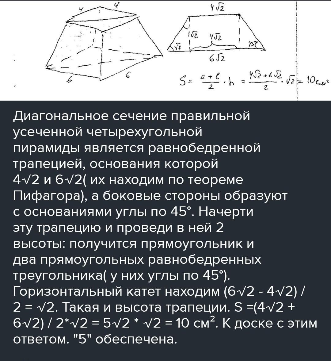 Стороны оснований правой прямоугольной пирамиды 8 см и 6 см. А боковые края 5 см.
