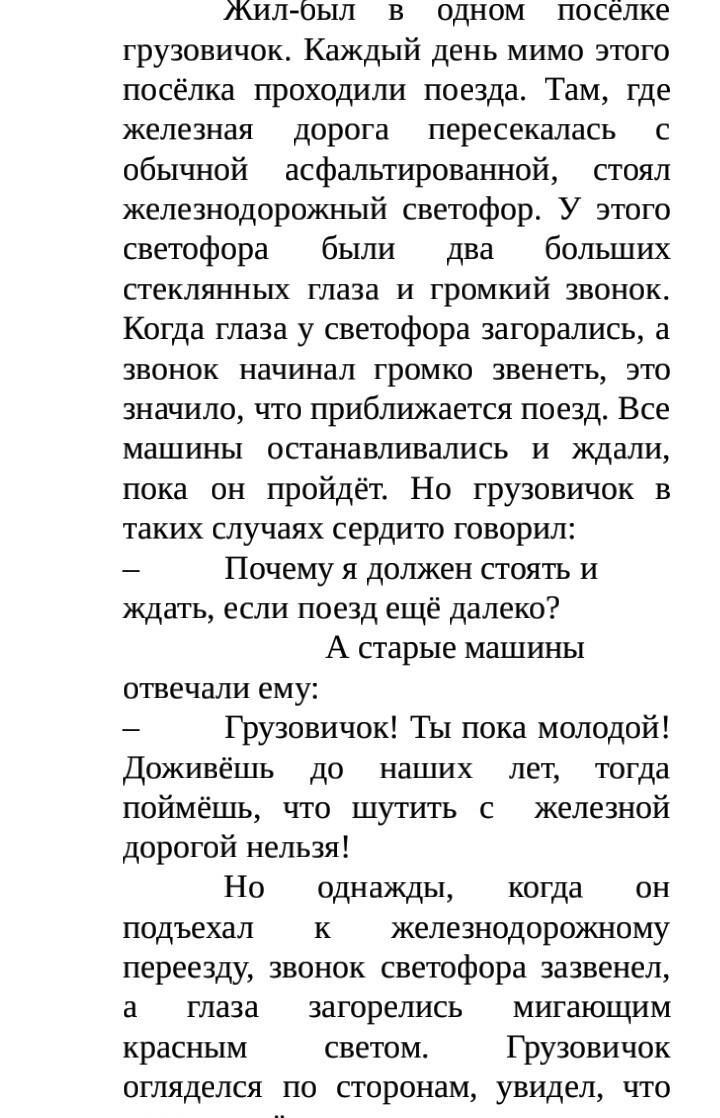 И какая основная мысль этого текста??? в крации там крч грузовичок сказал почему сирена идет а поезда нету и ему сказали что лучше не переесжать и в один раз когда началась сирена и небыло поезда и он решил перехать но на середине он застрял и уже тут как тут был поезд но там поблизости был самосвал он успел его вытащить с рельз и грузовичок говорил что ему стыдно это в крации