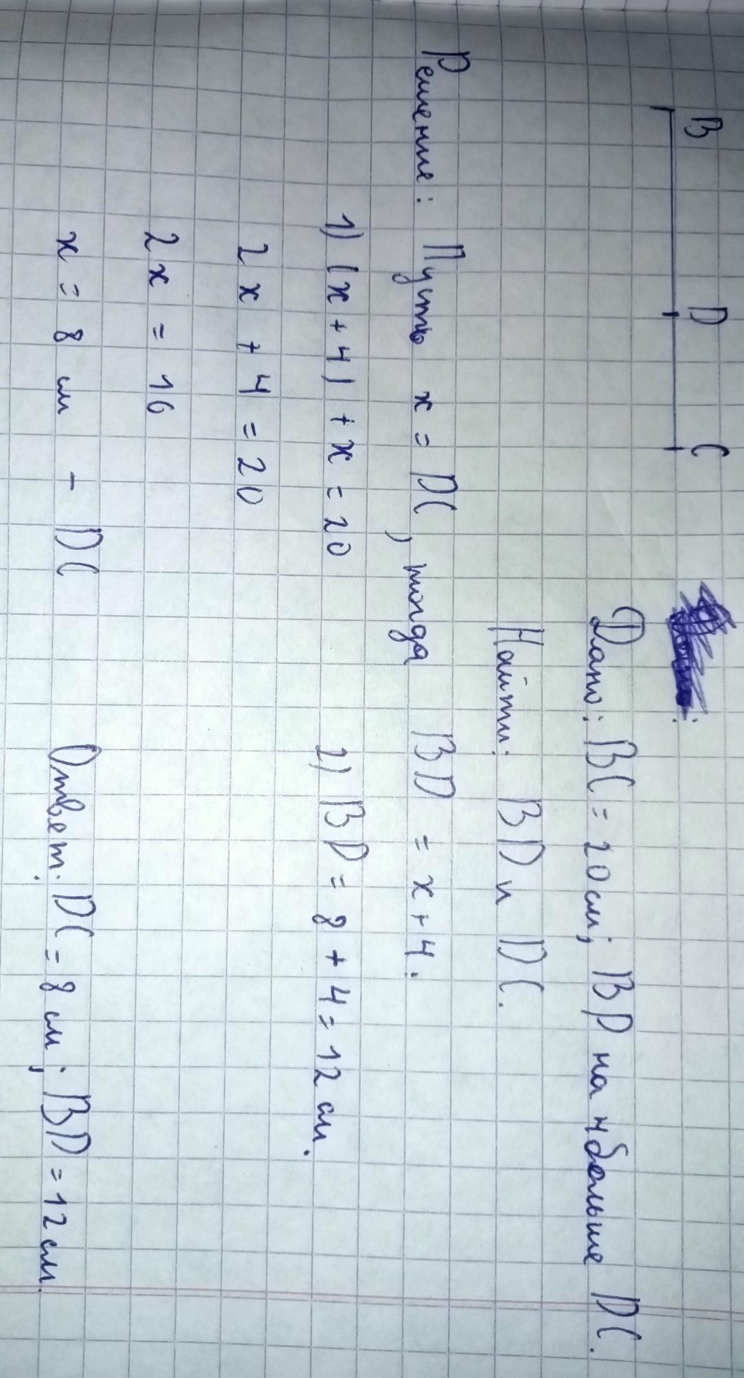 из задачи 3, если ВС = 20 см, а отрезок BD на 4 см