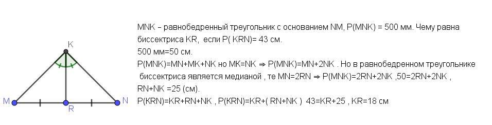 MNK – равнобедренный треугольник с основанием NM, Pmnk = 500 мм. Чему
