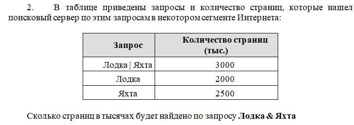 2. В таблице приведены запросы и количество страниц, которые нашел поисковой сервер по этим запросам в некотором сегменте Интернета: