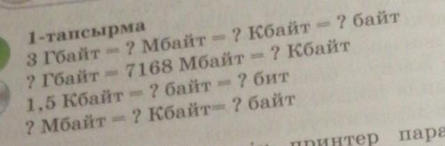 3 гбайт = ? мбайт= ? кбайт =? байт ? гбайт=7168мбайт =? кбайт
