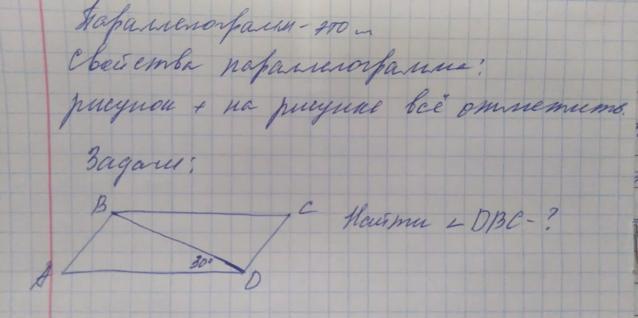 3. Задали: ABCD- параллелограмма, DB‐ диагональ, <ADB=30°