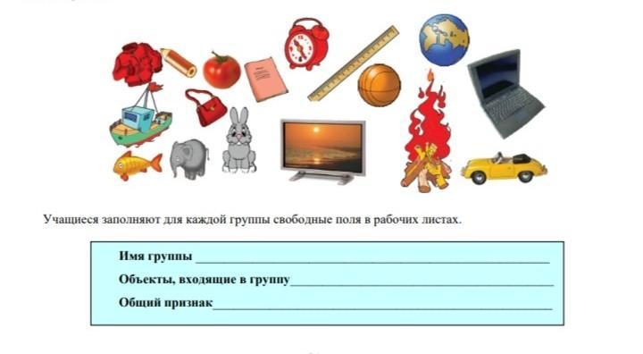 имя группы:1)техника вродит:телевызор .ноудбук.будильник :2)круглые:помидор . мяч глобус