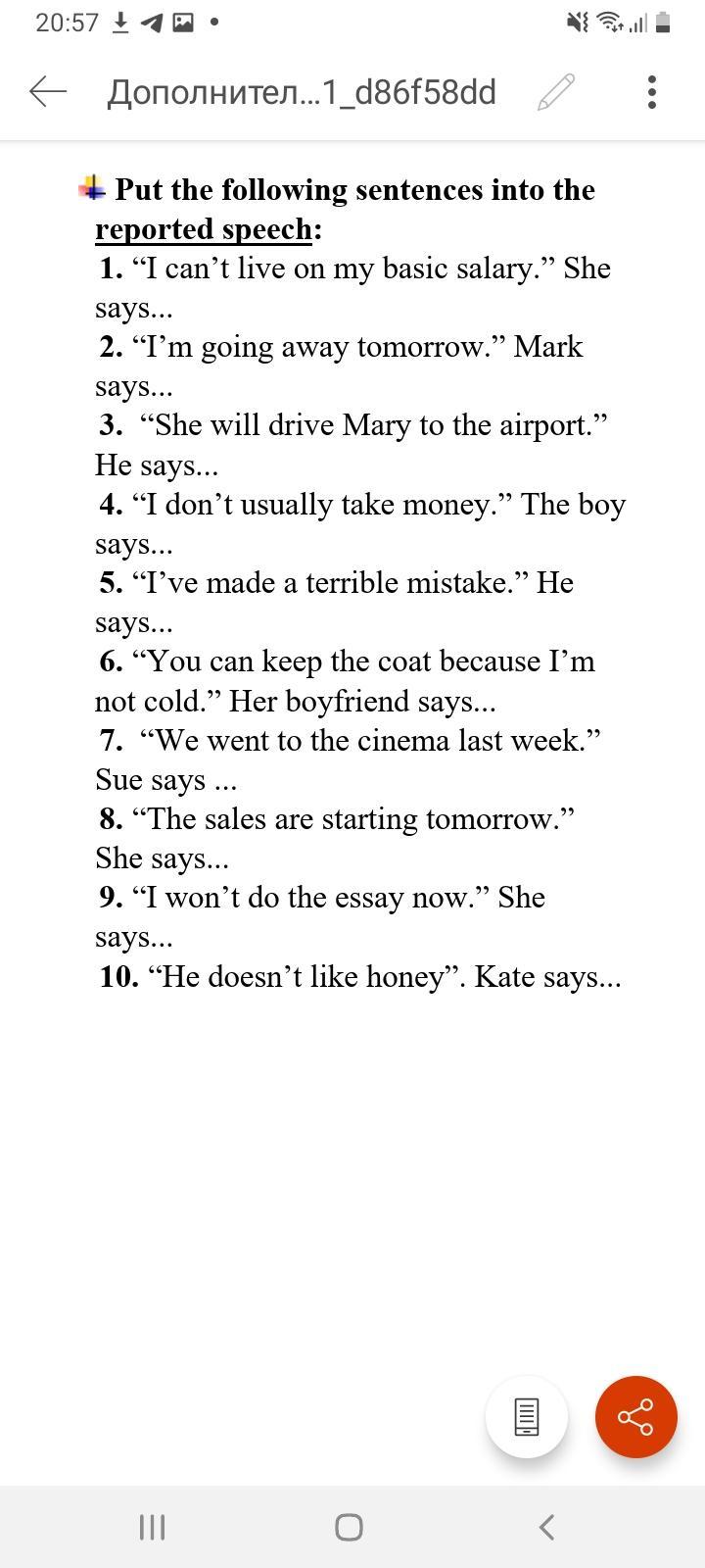 по сути между He/She says и прямой речью просто ставишь that he/she и переписываешь предложение