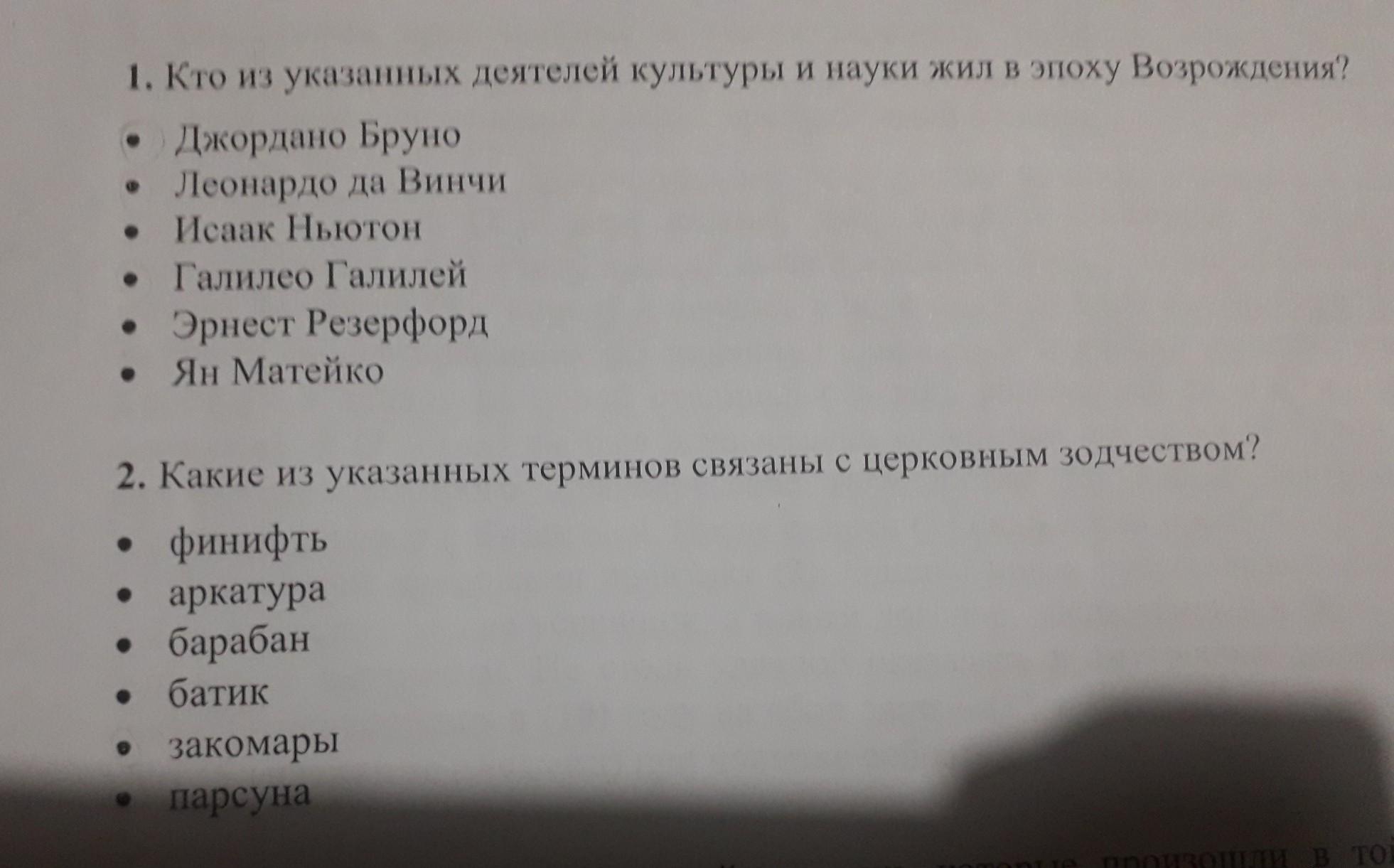 1) Джордано Бруно, Леонардо да Винчи, Галилео Галилей.